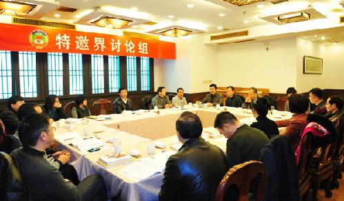各界别组委员在热烈地讨论政府工作报告。