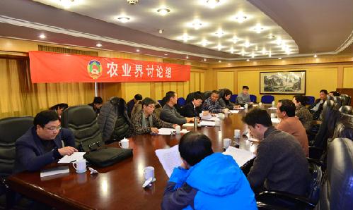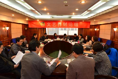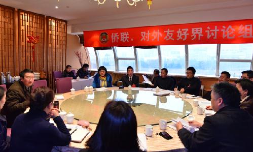侨联、对外友好界别组讨论组委员在热烈地讨论政府工作报告。