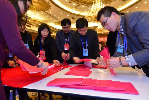 选举现场,委员们在选票上认真填写。
