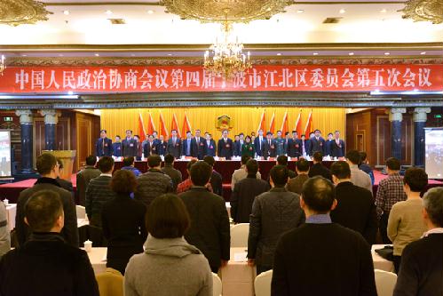 1月18日上午,在庄严的国歌声中,中国人民政治协商会议第四届宁波市江北区委员会第五次会议隆重开幕。来自各个界别、各条战线的区政协委员齐聚一堂,认真履行政治协商、民主监督和参政议政职能,为我区加快构筑宜居宜业的现代化滨水品质城区献智献策。