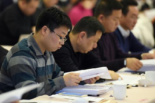 区政协委员在认真听取常委会工作报告和提案工作报告。