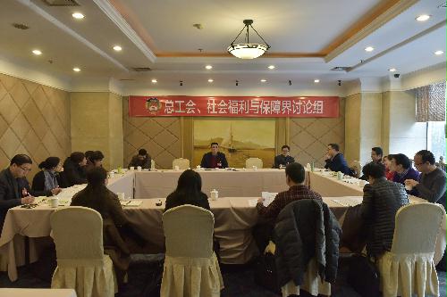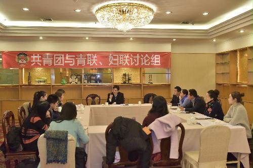 图为区委常委、组织部长王邦进听取共青团与青联、妇联界别组讨论情况。