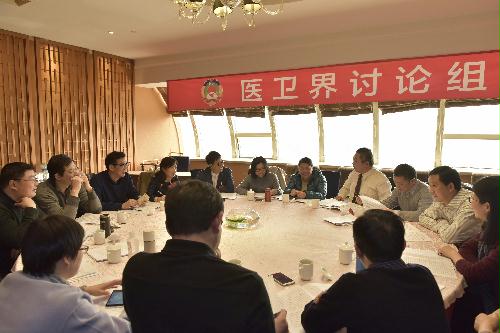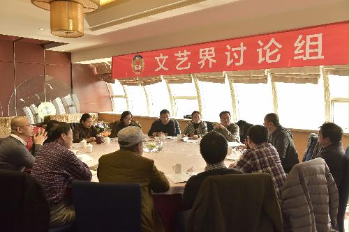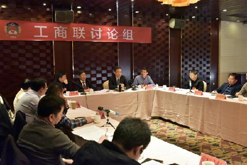 2月6日下午,区政协委员围绕政府工作报告进行讨论。讨论现场,委员们敞开心扉、畅所欲言。图为区委书记华伟听取工商联界别组讨论情况。